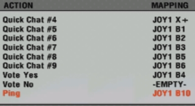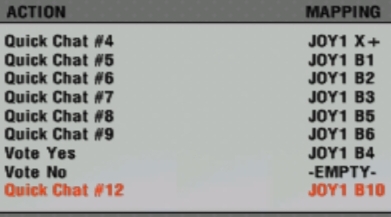 Quick Chat #10〜12はデフォルトでは "/vote yes", "/vote no", "/ping" で、このときはキー割り当て画面ではこんな表示ですが
