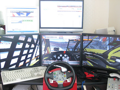 2009-04-11 机上の惨状 Hardware joy 上は白く飛んでしまってますが。 だんだん恥ずかしくなってきますね(苦笑)RaceSim臨場感すごいです。某氏から頂いたTH2GOその他のおかげです。ありがとうございました。でもショートオーバルを200周とかしてると酔いそうになったりもします。